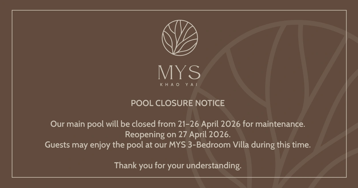 and an elegant 3-bedroom signature MYS Villa. Indulge in modern comforts and reconnect with nature against the breathtaking views of Khao Yai National Park.